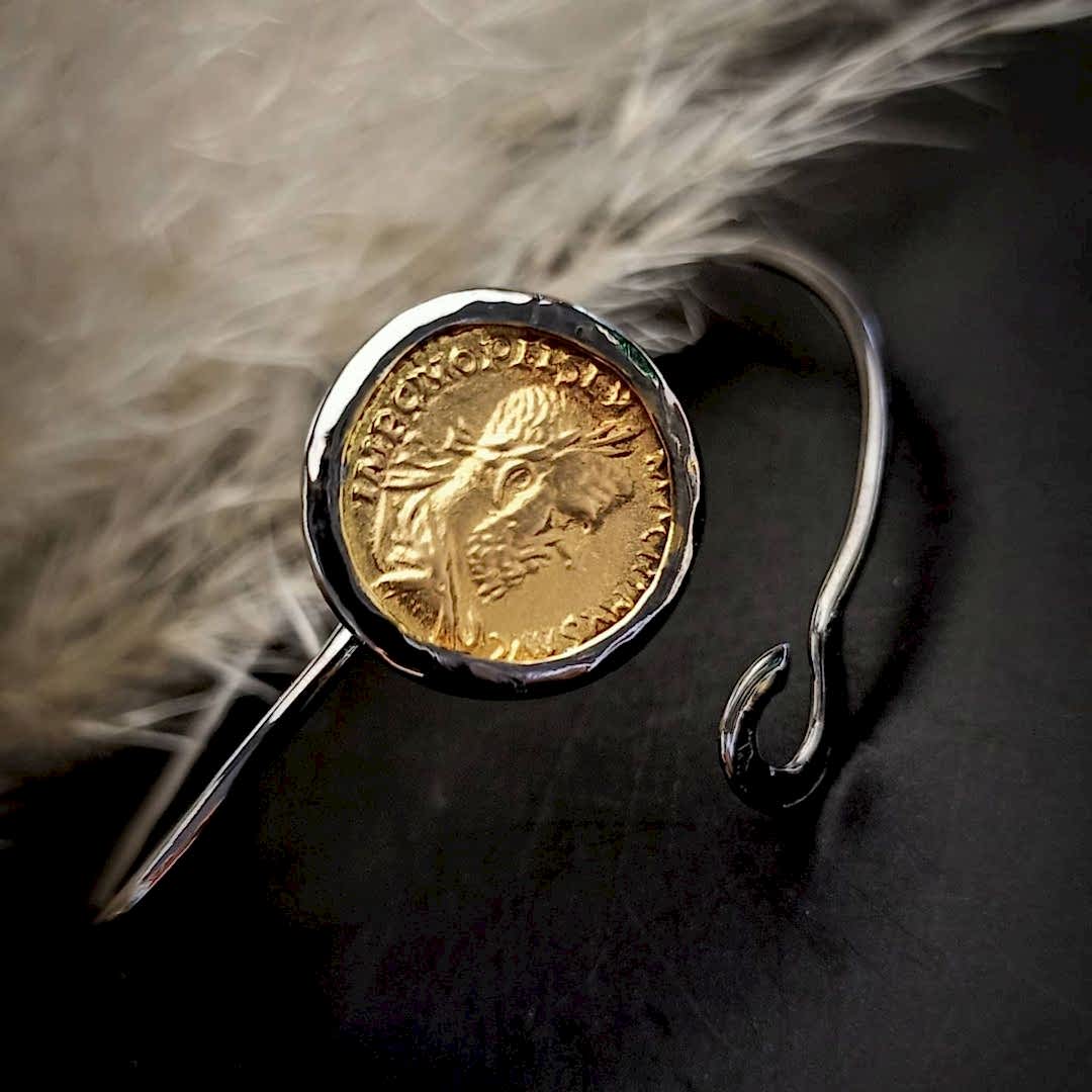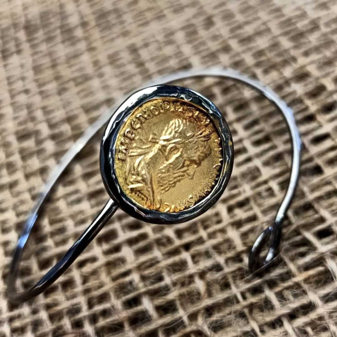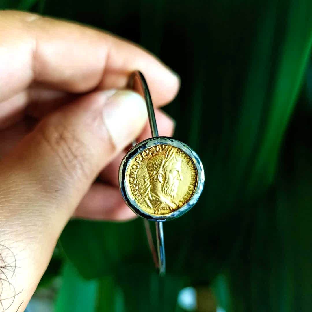 925 ag 22k kaplama ve siyah rodyum, antik galdyatör kelepçe paralı bilezik